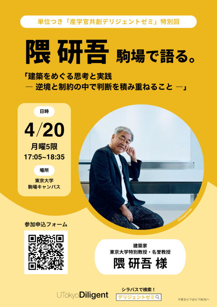 世界的建築家である 隈 研吾氏をお招きしてゼミの特別回を開催します!